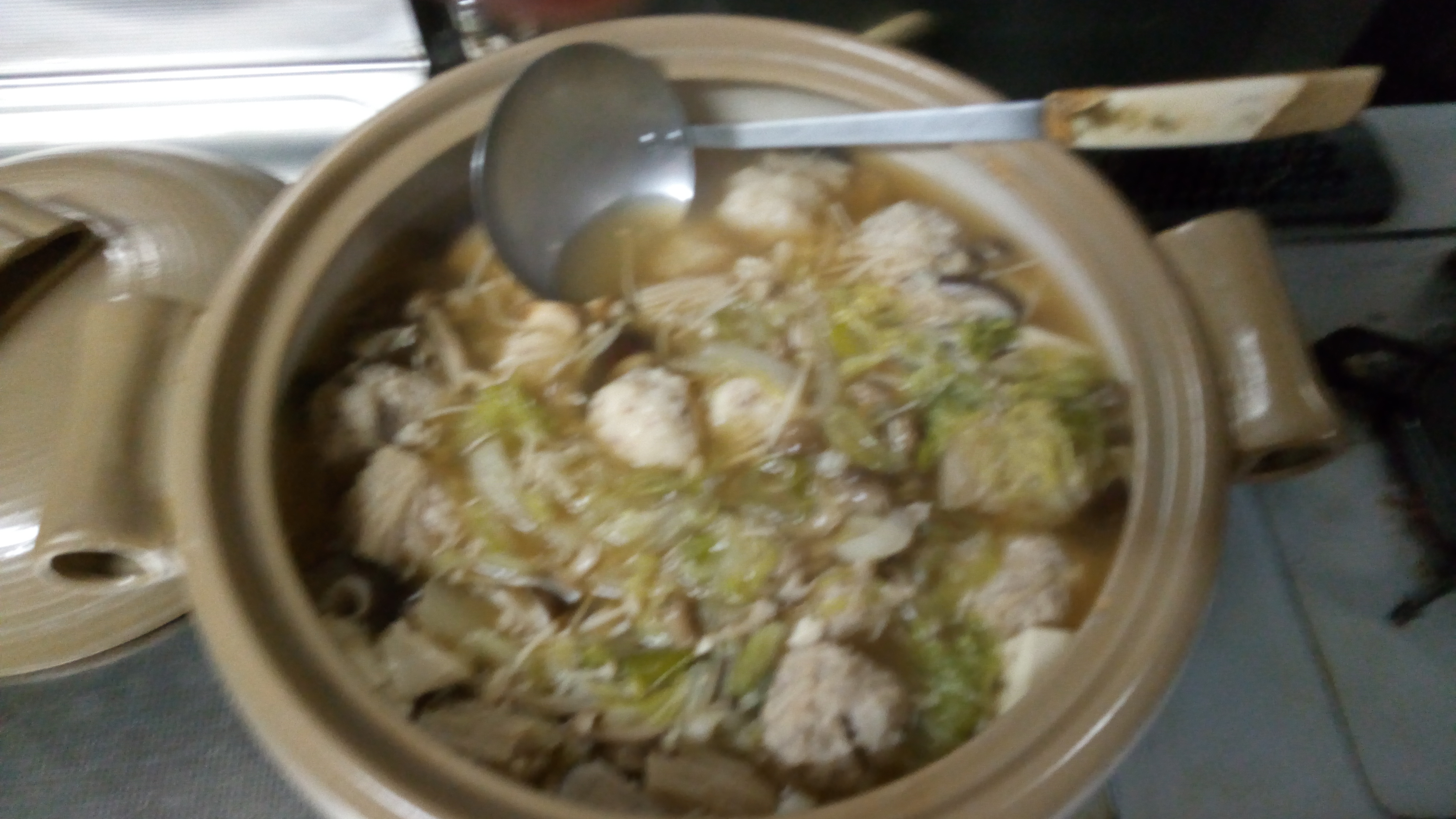 母が野菜をたっぷり入れて、鶏団子鍋を作ってくれました。