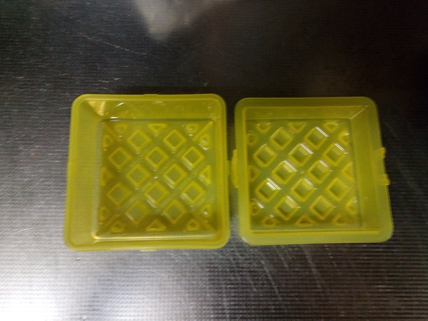写真左側の型に生地を流し込み、電子レンジでチンして生地が膨らんだら、右にある蓋でギュってすれば出来上がり♪