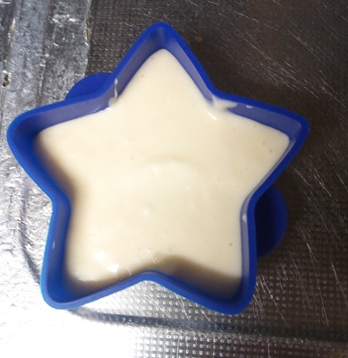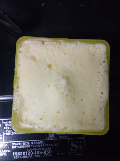 型の半分ぐらいまで記事を流し込み、電子レンジでチン!