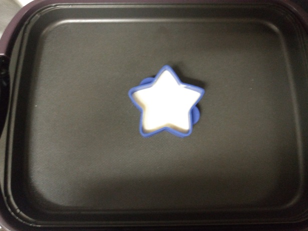 厚焼きホットケーキ型は、型に生地を流し込んだ後、フライパンやホットプレートの上に型を置いて、弱火でじっくり焼く感じ。