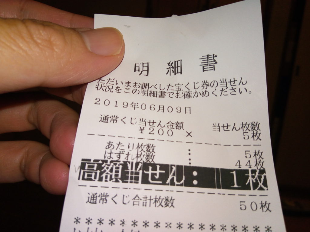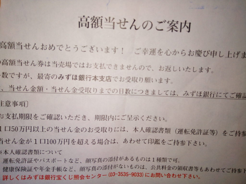 ちゃんと調べてなかったからね、宝くじ売り場の機械で「高額当選」の赤い文字が表示された時はびっくりした。