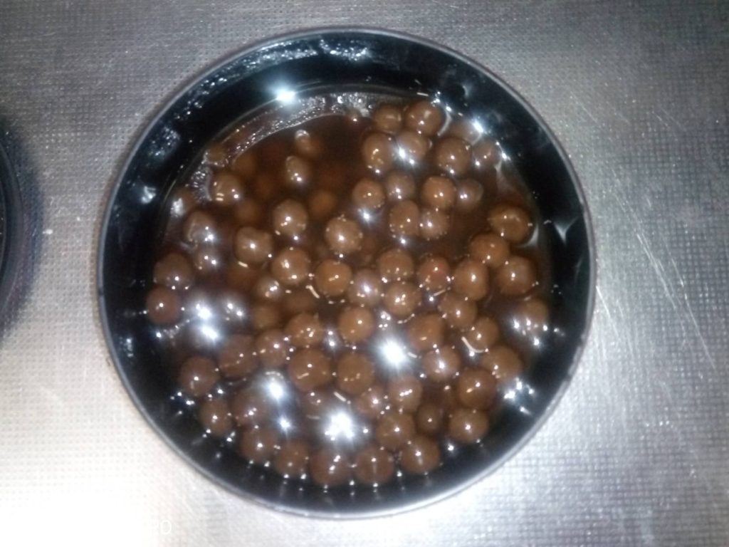 そして、出来上がったタピオカの黒糖シロップ漬けは・・