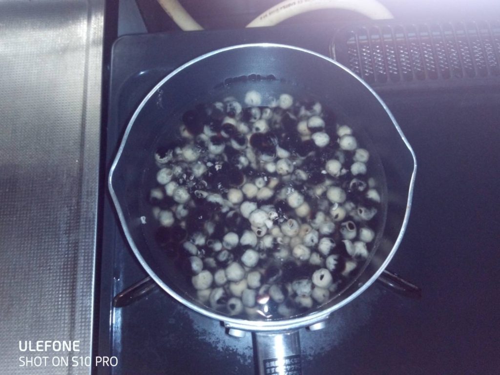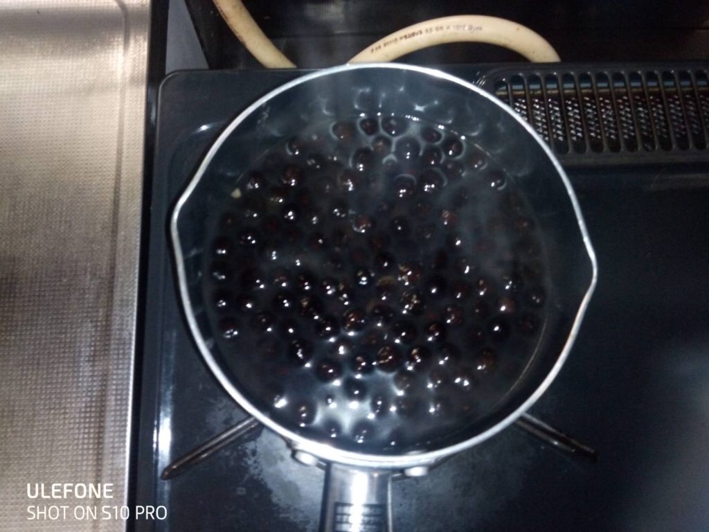 これも沸騰したお湯で、タピオカが黒くなるまで茹でればいいだけ。